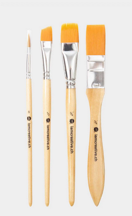 • Grösse: 2x Flachpinsel (18/20 mm), 1x Schwertpinsel (13.5 mm), 1x Rundpinsel (5 mm)