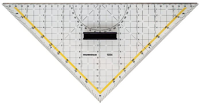 RUMOLD ZEICHENDREIECK TRANSPARENTES ACRYLGLAS MIT SCHNEIDEKANTE AUS ROSTFREIEM STAHL, LÄNGE DER HYPOTENUSE 325MM, 1STK.