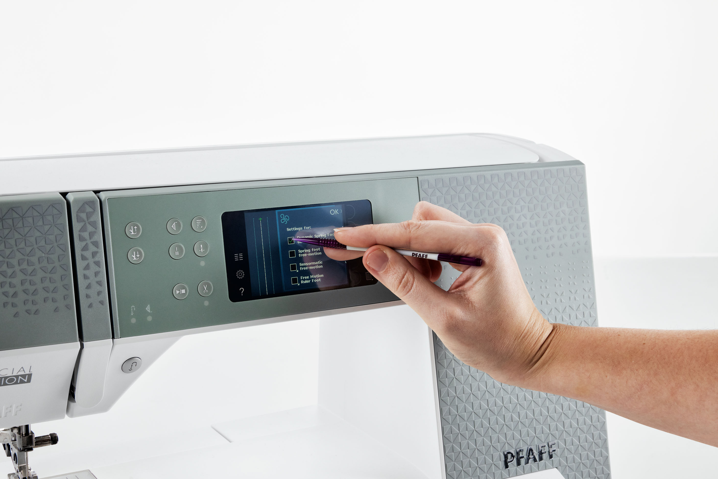 - Color Touch Screen mit allen Infos zum angewählten Stich